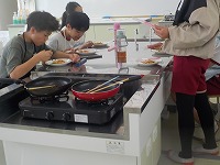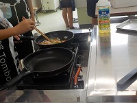 家庭科室からいい香りが漂ってきました。家庭科の調理実習に子どもたちが取り組んでいました。調理をほとんどの班が終え、食べている班もたくさんありました。自分で作った野菜炒めは、最高のようでした。家でもシェフとなって家族に最高の味の野菜炒めをふるまってください。
