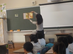 図書ボランティアさんが1年生の教室にお越しいただき、絵本の読み聞かせをしていただきました。
