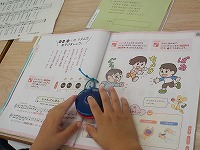 音楽の時間、カスタネットを使って、歌に合わせてリズムうちをしました。思い切りたたいて、ひもの結びが取れてしまう人がいるほど、元気にカスタネットで楽しく演奏することができました。