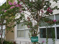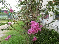 樹皮がすべすべした感触のサルスベリ。比較的長い間紅色の花が咲いていることから、別名「百日紅」とも言われるそうです。校庭の北側(南校舎の近く)と南側(吉田山の近く)に植わっています。今年、4年生が総合的な学習の時間に校地内の樹木に名札をつけてくれました。