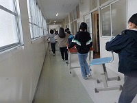 新年度の教室配置が決まり、4年生・5年生の子どもたちが新年度の教室に机椅子を運び入れてくれました。