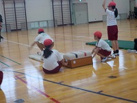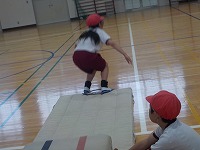 体育館で立ち幅跳びをしていました。高く跳ぶことを意識して跳び箱からジャンプしました。目標まで届くようにするためには、身体を使っていくことが大切であることがわかりました。手を大きく振り上げることで体を前に運び跳んでいる姿が見られました。全身を使って跳ぶことで新体力テストも自分の目標をクリアできるよう頑張ってほしいと思います。