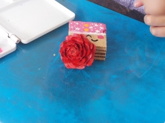 松ぼっくりと木を組み合わせてクリスマスの飾りを作っていました。木を決まった長さに切り、自分なりのデザインをして松ぼっくりと合わせて飾りをつくりました。