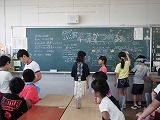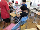 代表委員会で「令和初!仲良く楽しい夏まつり~新しい楽しさを見つけよう~」とスローガンを決め、3年生以上の各クラスは、みんなが楽しめる出し物の準備を進めてきました。各教室を回る時には、ペア学年でグループになり、大きい学年の子が小さい学年の子を連れて行きました。各教室を回ると、ボーリング・射的・魚釣り・はてなボックスなど楽しいゲームが用意されていて、あっという間に時間が過ぎていきました。