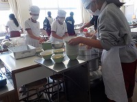 6年生の三泗陸上記録会に参加した子どもたちは、みんなより少し遅れての給食のため、家庭科室でいただきました。その際、配膳を周りの友達がしてくれて労をねぎらっている姿が6年生の素敵なところだと感じました。