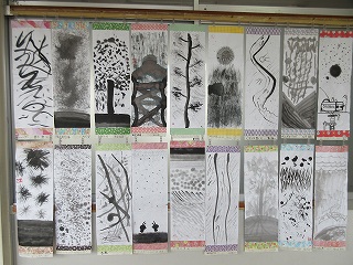 6年生『墨で表す』 4組教室前展示です。