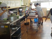 教室では、かきあげのお代わりに列になって並んでいる教室もありました。