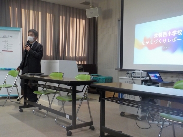 放課後、人権・同和教育課の指導主事の先生を招いて、なかまづくり研修を行いました。二学期までの取り組みを振り返り、子どもたちの変容や教師の変容について学びました。