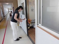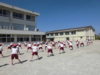 手洗いや咳エチケット、換気などの基本的な感染症対策をはじめ、できるだけ「密」をなくして教育活動を進めています。体育の授業ではマスク着用は必要ないとされていますが、子どもたちの間隔を十分に確保しながら運動をしています。また、一日一回以上、教室や階段、トイレ等、多くの子どもたちが触れるところを消毒して、感染予防の対策に努めています。