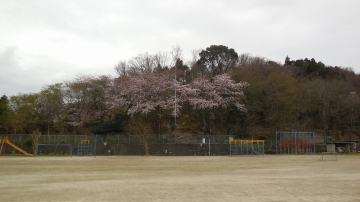 吉田山の桜の花が咲き始め、山がうっすりピンク色に染まってきました。
