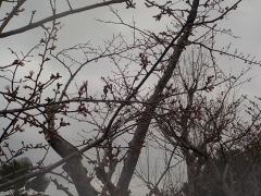 校門の桜がちらほら咲き始めました。春は別れの季節ですね。