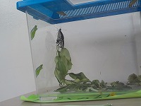 3年生教室前廊下で飼っているアゲハ蝶がさなぎから成虫になりました。子どもたちはいつも観察している様子で、さなぎや成虫になったことを喜んでいました。