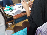 書写の時間、バランスに気をつけながら「羊」という字を毛筆で書いていました。中心線を通すことや、横棒のバランスなどに気をつけて丁寧に書いていました。一年間習字を学習してきたので、子どもたちの筆遣いも上手に扱えるように成長しています。