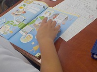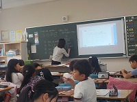 英語の時間は、天気とその時にする遊びを考えていました。晴れた日には、ドッジボールやサッカーなどのスポーツ、雨の日にはカードゲームなど、子どもたちは日ごろの経験から英語で話をしていました。これからも積極的に英語での表現を発表していきましょう。