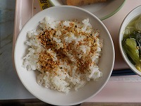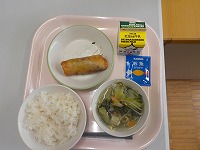 今日は、魚のふりかけがつき、ご飯にかけて食べました。春巻きは給食室で手作りしてもらったもので、中に春雨やひじき、豚肉が入ったものでボリュームたっぷりのメニューでした。