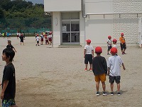 運動場では、サッカーやドッジボールなど子どもたちが元気に遊んでいます。よく見ると先生たちも入って遊んでいるクラスもあります。先生も含めてみんなで元気に運動場で過ごしこれからも楽しんでほしいと思います。