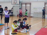 踏切の音や着地の音に意識しながら練習する姿が見られました。授業の前半でうまく跳べなかった子も後半にはしっかり跳べるようになり、1時間での成長を感じました。タブレットで撮影し自分の姿を振り返りました。