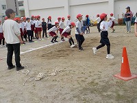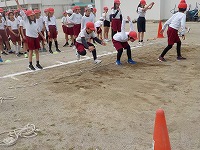 何回か跳びながらできるだけ遠くに跳ぶためにはどうすればよいのか考えていました。身体全体を使ってより遠くに跳べるようにしてほしいと思います。