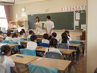 中学校の職場体験も最終日を迎えました。1年生の子どもたちも中学生先生にも慣れてきて楽しそうに話したり遊んだりしている姿が見られます。