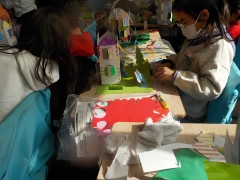 子どもたちは作品について説明してくれ、子どもらしいイメージを膨らませながら作品を作っていることがよくわかりました。
