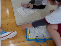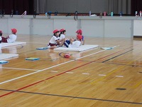 新体力テスト、上体起こしに挑戦していました。タイマーが鳴るまでにがんばって体を起こしている子どもたちは、歯を食いしばって必死さが伝わってきました。