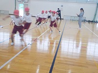 本校では、体育の時間、新体力テストに取り組んでいます。6年生は、シャトルラン、3年生は反復横跳びを体育館でがんばっていました。