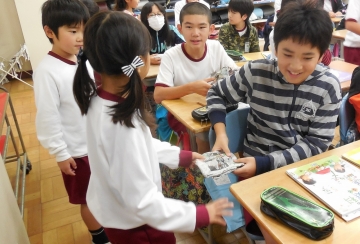 1年生にとって、入学して以来ずっと6年生のお兄さんお姉さんにはたいへんお世話になってきました。今日はそのお礼として、先日サツマイモ掘りで収穫できたお芋を6年生にプレゼントしました。6年生も嬉しそうに受け取っていました。6年生のお姉さんお兄さん、いつもありがとうございます。
