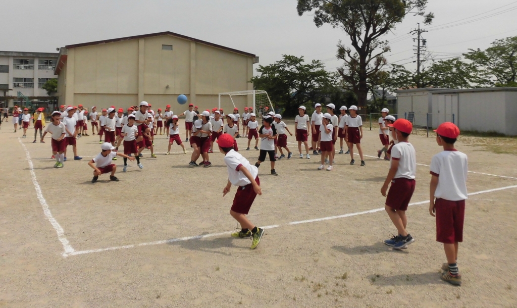 1年・6年、2年・4年、3年・5年が活動を通して、優しさや思いやりの気持ちを育むことをねらいに、ふれあい活動に取り組んでいます。5年生は3年生と各学級ごとにふれあい学級となり、色んな活動をします。今日は初めての顔合わせの会でした。5年生がリードして各班で遊んだり、多人数でドッチボールをしたりしました。とても楽しいスタートがきれました。