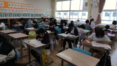 6年生が、全国学力・学習状況調査、国語・算数の2教科に取り組みました。これまでの学年で学習してきたことが定着しているか、身につけた知識を活用することができるかを見る問題に挑戦しました。学校では今後、本日実施した問題を分析し、夏以降に明らかになる結果と合わせて、よりよい授業にするために全学年の教職員で検討していきます。