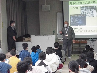 5年生は総合的な学習の時間に四日市公害について学習しています。今日は「四日市公害と環境未来館」から2名の方に来ていただき、四日市公害についてお話を聞きました。コンビナートができる前の四日市の様子や、コンビナートができてからの小学校での生活、ぜんそくの苦しさなどのお話に子どもたちは真剣に耳を傾けていました。これから、当時の人々の思いにふれながら、公害の事実を正しく学び、様々な人々の立場に立って考えて学習を進めていきます