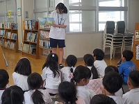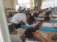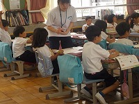 常磐中学校の職業体験も2日目となりました。今日も子どもたちの丸つけや絵本の読み聞かせ、休み時間にいっしょに遊ぶなど大忙しの中学生先生でした。