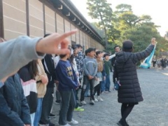 2日目最初の見学地、二条城に到着しました。修学旅行生や外国人観光客などたくさんの人が訪れていました。