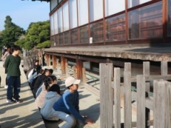二の丸御殿では、大政奉還が行われた広間など見学しました。欄間やふすま、屏風絵などの豪華さは圧巻でした。歩いているときには、ウグイずばりの廊下を音を楽しみながら見学できました。