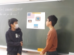 流暢な英語でその国の観光地や食べ物などを発表しています。6年生で取り組んだ外国語活動への意欲も中学校でも継続できるようにしてくれることを願っています。