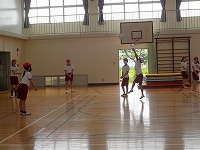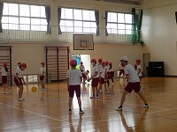 うち方を考えながらグループで活動を楽しみました。ボールは思い通りに動いてくれませんが、みんなで協力して活動していってほしいと思います。