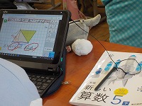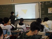 算数の時間、三角形の面積の求め方について考えました。先に学習した平行四辺形の面積の求め方をヒントに考えました。