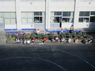 1年生生活科、学級園での観察です。