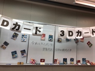 視聴覚教室にて文化部主催による「親子で作ろう!3D立体カード」が行われました。