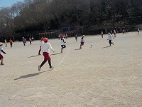 運動場でミニサッカーゴールを使ってサッカーミニゲームに取り組んでいました。ボールをつなごうとしながらもうまくつながらない場面もありましたが、みんなでボールを追いかけて楽しく活動をしていました。