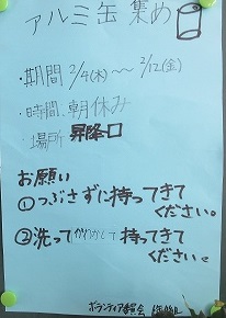 ボランティア委員会の呼びかけで集まったアルミ缶です。