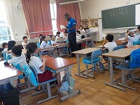 HEFの先生に来ていただき、数字の英語で数えていました。子どもたちは、ゲーム感覚で英語で数字を数え、楽しみながら活動しました。