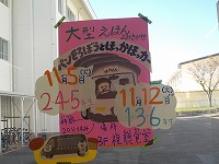 図書館まつりの期間中、大型絵本の読み聞かせもしていただくようで昇降口にポスターがはられていました。大型絵本も楽しみですね。