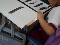 3年生から始まった毛筆も少しずつ上達しています。「一」を何度も練習して、筆の入れ方止め方を上手に書けるように練習していました。筆が途中でかすれてしまう人もいて、墨のつけ方なども練習を通して加減していくことができるといいですね。子どもたちはいい姿勢で書いていたので、それを続けてもっともっと上達していってほしいと思います。