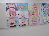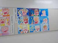 2年生が図工の時間に一生懸命描いていたポスターが掲示されています。どのポスターも口が目立つように描かれています。