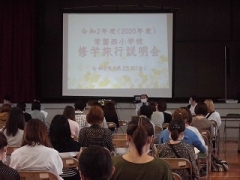 6年生の修学旅行に向けての説明会を行いました。例年は子どもたちと保護者といっしょに説明会をしていましたが、今年は密を避けるため子どもたちは6限目に、保護者の方には放課後に行いました。