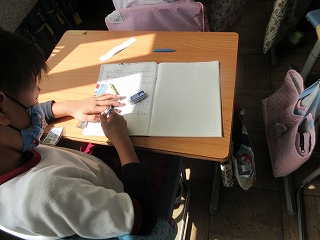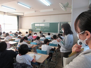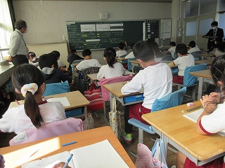 先生の「聞いていた人?」の声に、たくさんの手が挙がります。当てられると、先ほどの発言をもう一度発表します。「よく聞いていましたね。」