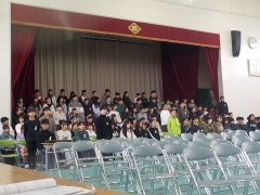 明日がいよいよ卒業証書授与式です。子どもたちにとって最後の卒業式練習となりました。昨日の練習よりも引き締まった表情で練習している姿が見られました。子どもたちには、感謝の気持ちを言葉と姿で表すよう話をしました。