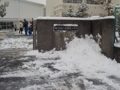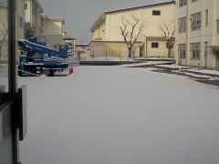 昨日からの雪で学校周辺が白銀の世界となりました。運動場も吉田山も真っ白となりました。正門から昇降口に入るまでのところも雪が積もっていました。朝教員が出て雪かきをして子どもたちが滑らないようにしました。