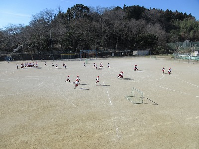体育の授業風景が見えます。