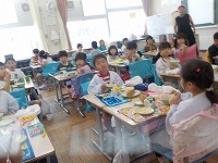ポークビーンズには、大豆、豚肉がたくさん入っていて栄養たっぷりでした。1年生の子どもたちもお代わりの列ができていました。